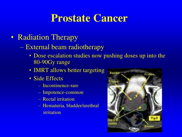 Trock, ph.d., associate professor of urology, epidemiology, oncology, and environmental health studies, and director of the division of epidemiology in the brady. Radiation proctitis is a very common inflammation of the rectum that occurs as a result of the radiation treatment of prostate cancer where. Side effects of radiation therapy compared to earlier radiation methods, these modern techniques reduce the chance of urinary and bowel problems.